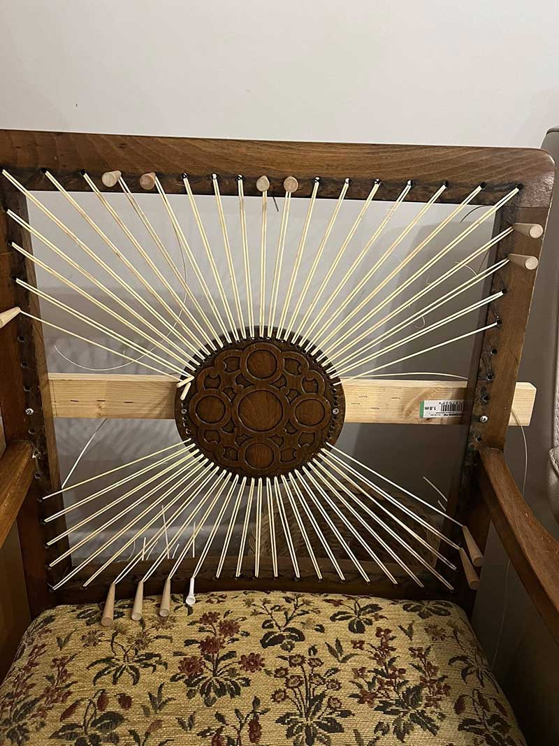 It is a bit like a spiders web, you start with the supports from the edge and work inwards, then you weave the circles and finish with the anticlockwise and clockwise weave to hold it all together.